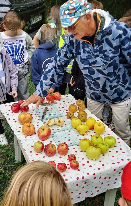 faire le tour du verger pour découvrir les différentes espèces d'arbres. Il a demandé aux enfants de bien observer les fruits puis la variété des pommes et leurs différences.