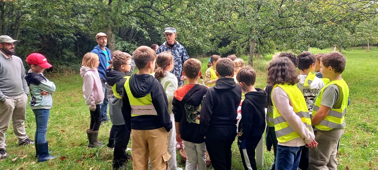 Les élèves de CM1, partis à pied de l’école dans les sentiers questembertois, ont découvert fin septembre le verger conservatoire du Galinio.